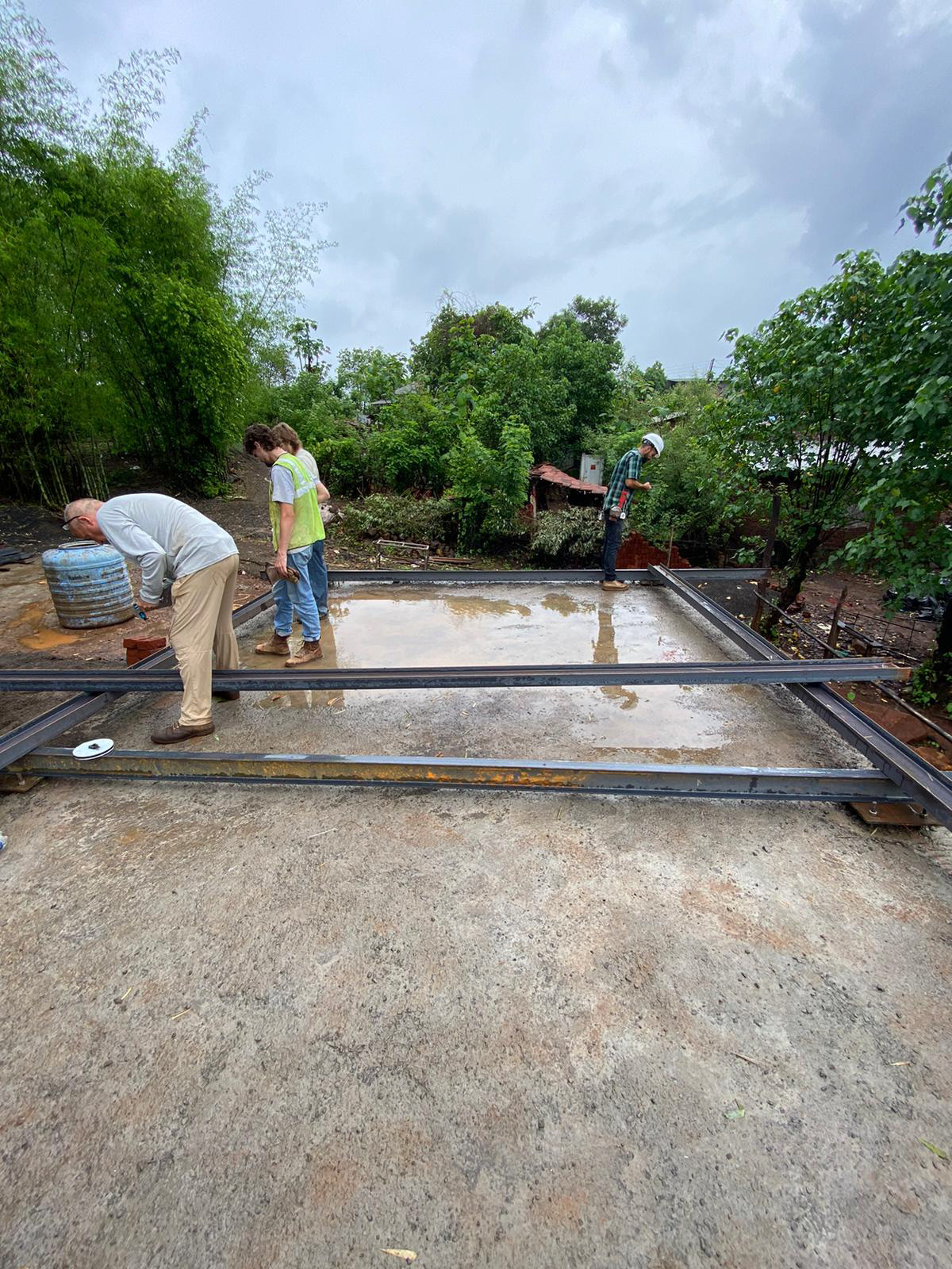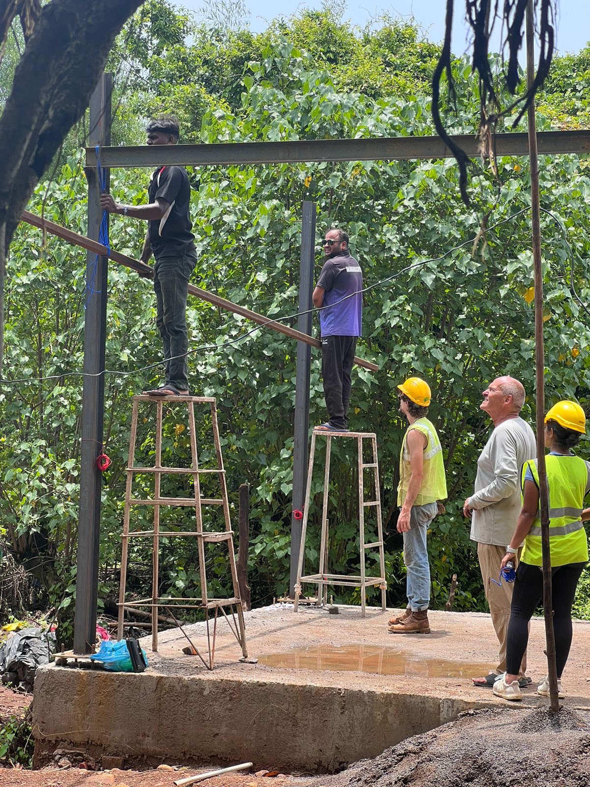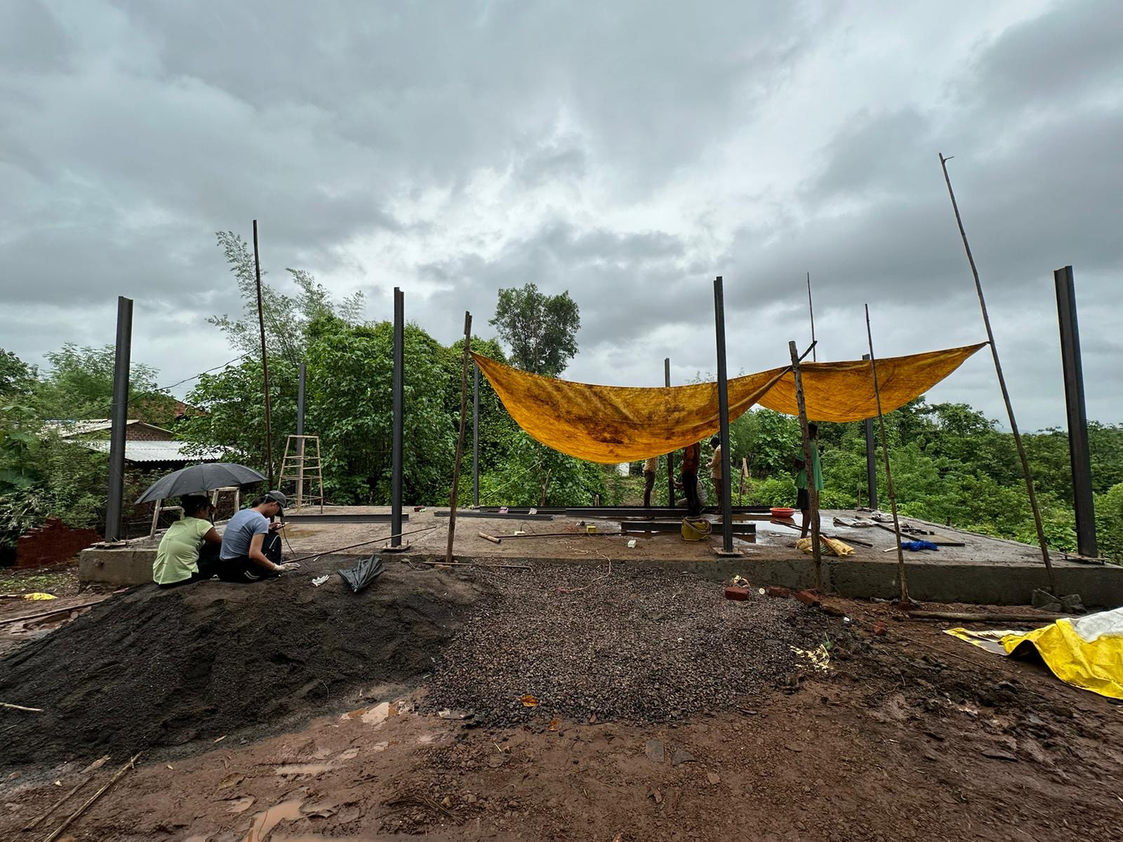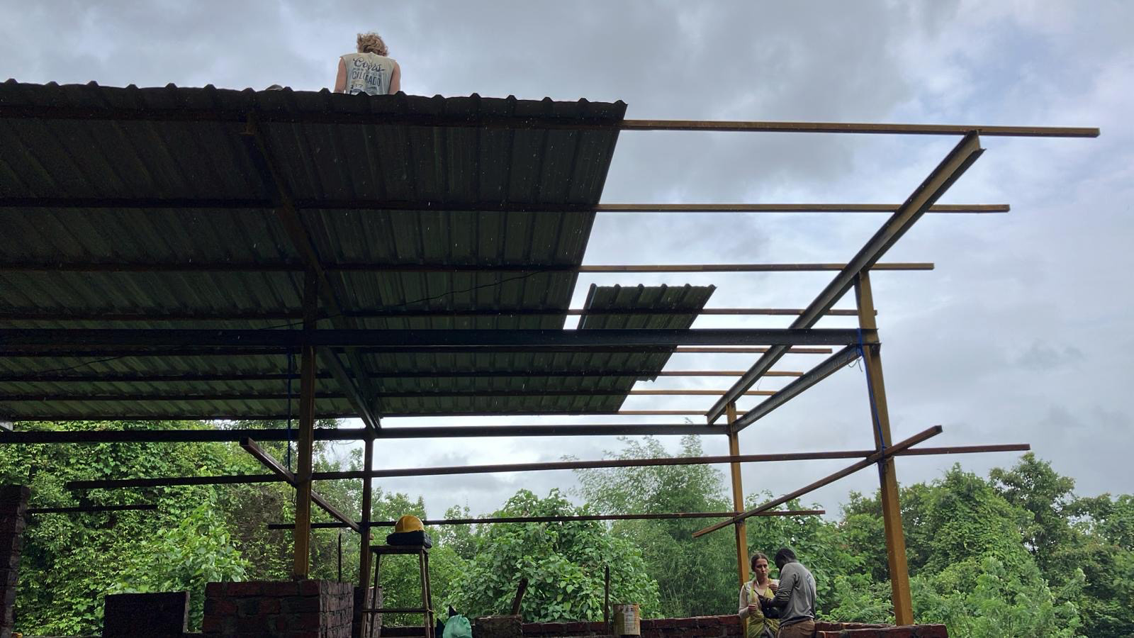 A community nestled in the jungle in western India was looking to create a space to gather. Through a collaborative effort between students and local builders, this structure was constructed out of local materials and traditional building techniques to help to bring a village together.